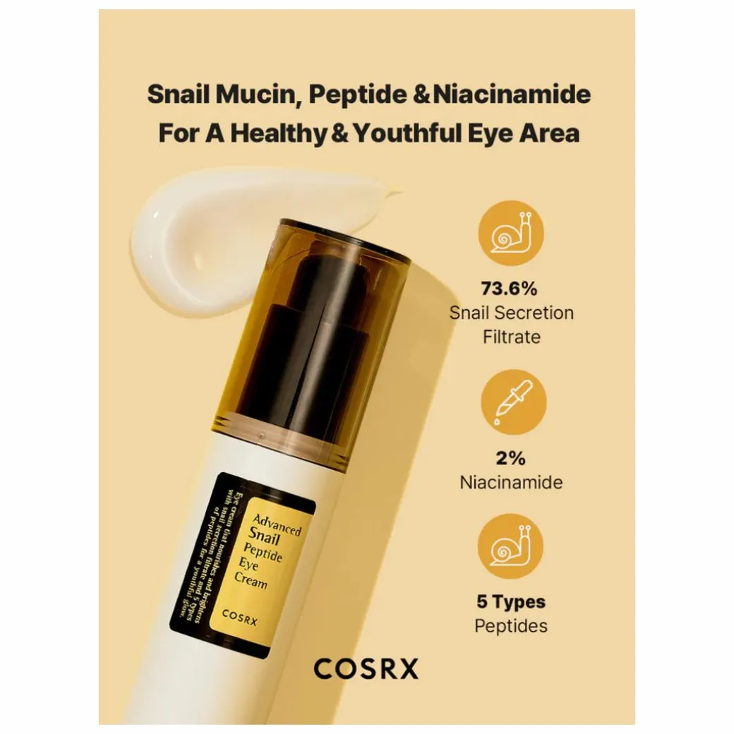 - 73.6% Snail Secretion Filtrate :Moisturize, protect and help rejuvenating the eye area