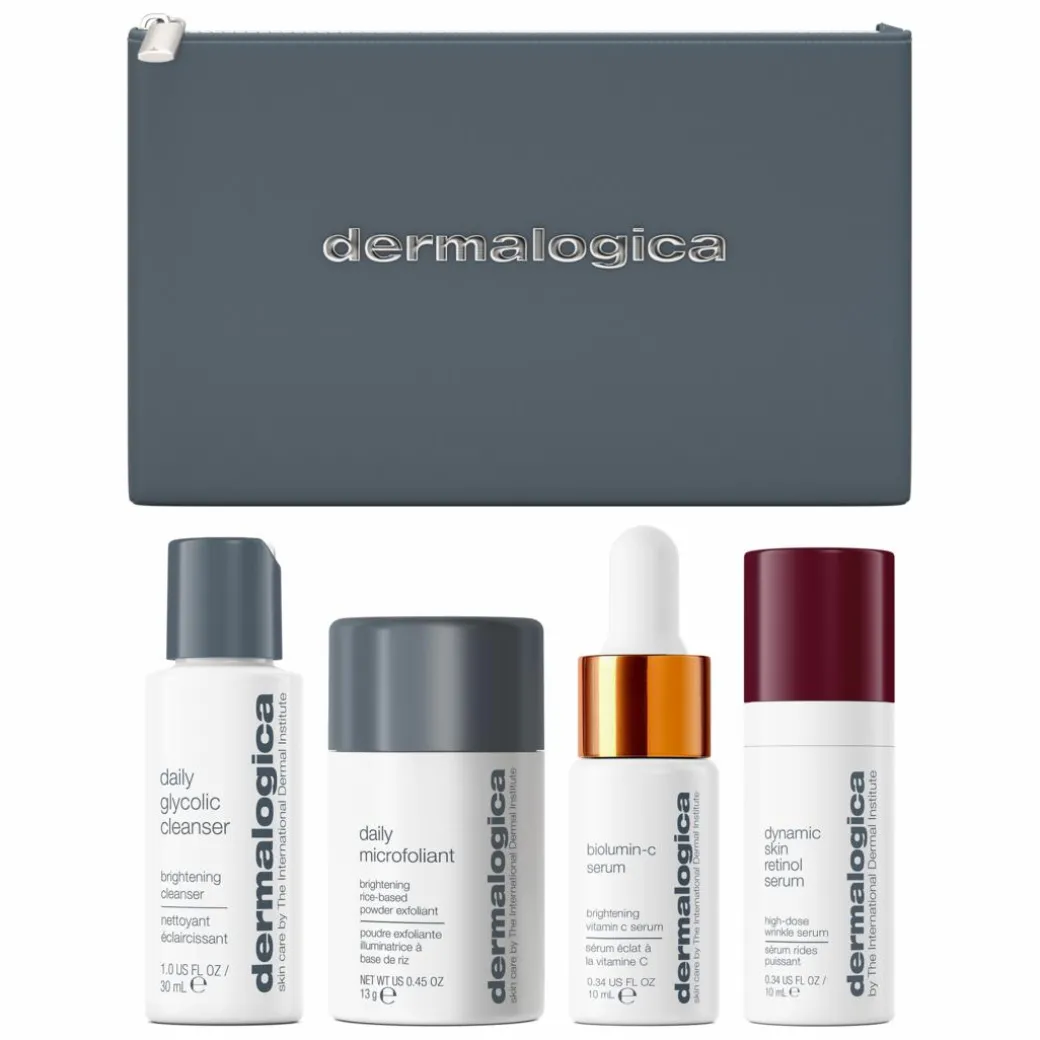 Power up your travel skin care regimen. This treatment includes skin-renewing Daily Glycolic Cleanser, brightening Daily Microfoliant and BioLumin-C Serum, and retexturizing Dynamic Skin Retinol Serum, all housed in a sustainable travel bag – so you’ll have radiant skin, wherever the day takes you.