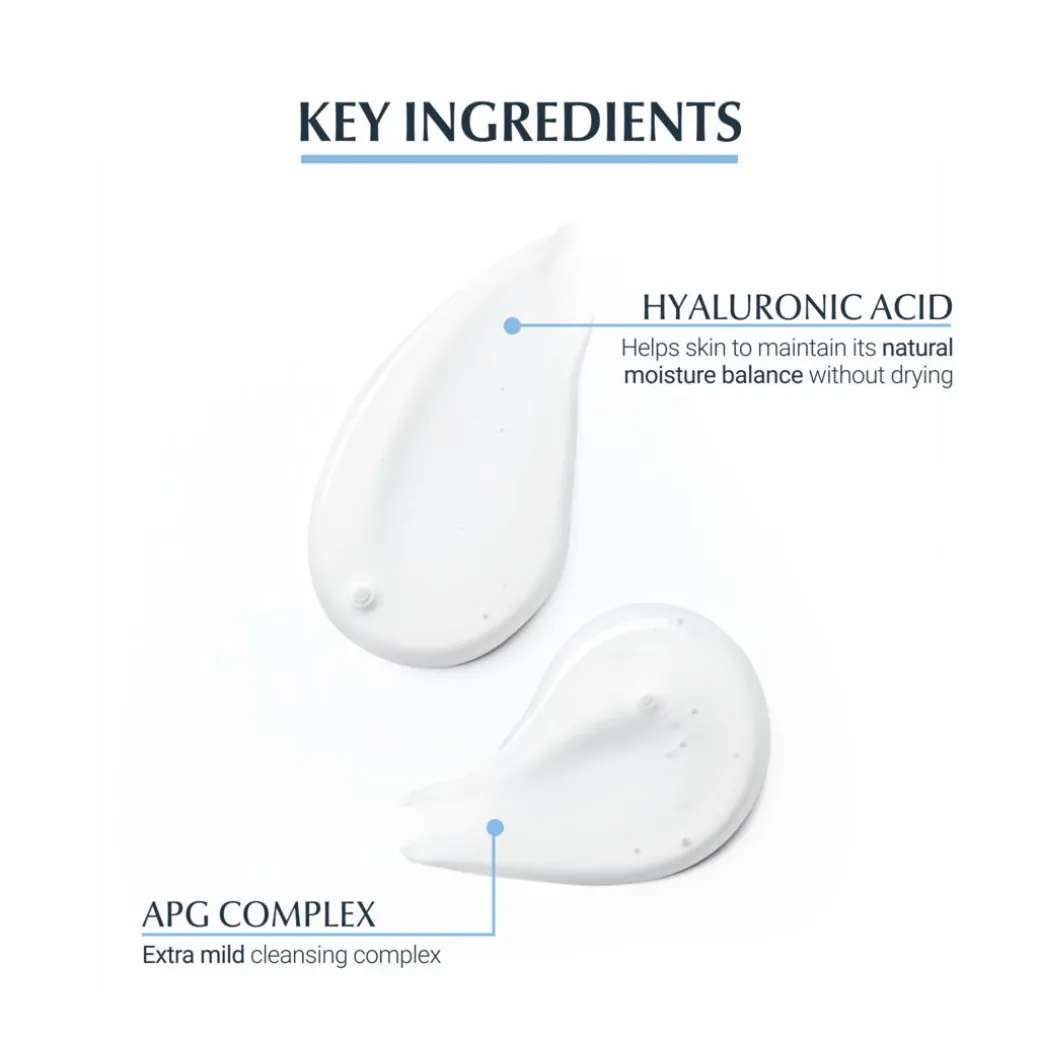 Clinically and dermatologically proven to be suitable for even the most sensitive skin, the formula features a mild cleansing complex to offer a thorough yet gentle cleanse. This innovative complex is paired with hydrating hyaluronic acid and a whole host of naturally moisturising ingredients. The result? A complexion which feels clean, soft and refreshed, while the skin’s natural moisture balance is maintained.