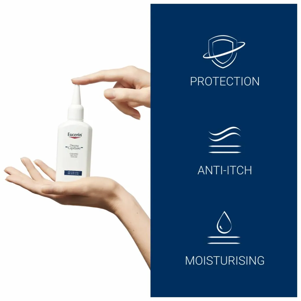 Intensely moisturise and soothe your scalp with the Eucerin DermoCapillaire Calming Urea Scalp Treatment – 5% Urea, a calming treatment for dry, itchy scalps.