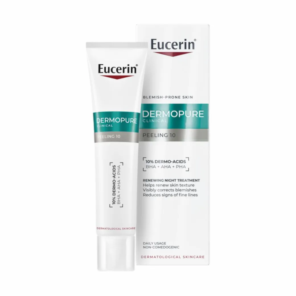 Eucerin DermoPure Overnight Peeling Treatment is recommended by dermatologists and clinically proven to renew the skin texture overnight as well as correct post-acne marks and target fine lines. This renewing night treatment works overnight to renovate skin texture, correct blemishes, and reduce the appearance of fine lines.