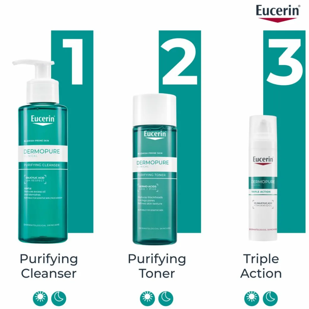 Eucerin DermoPure Purifying Toner is dermatologist-recommended and clinically proven to unclog pores, remove blackheads, and refine skin texture. Its powerful formula combines 10% Dermo-Acids (BHA, AHA, and PHA) to deliver gentle yet effective exfoliation.