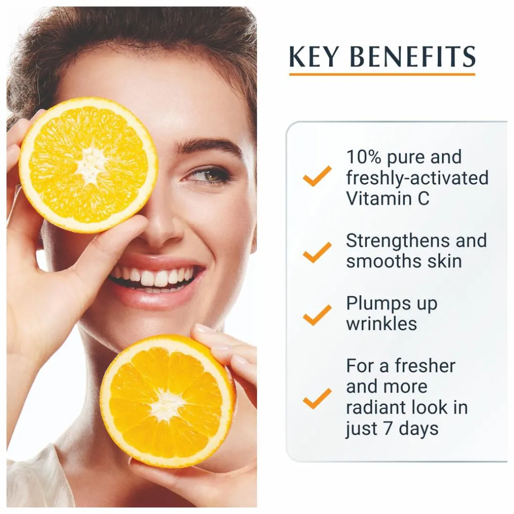 Eucerin’s answer is to provide your complexion with an intense 10% shot of pure, freshly-activated vitamin C, which has been carefully formulated to fight free radicals for a more healthy, youthful and glowing complexion.