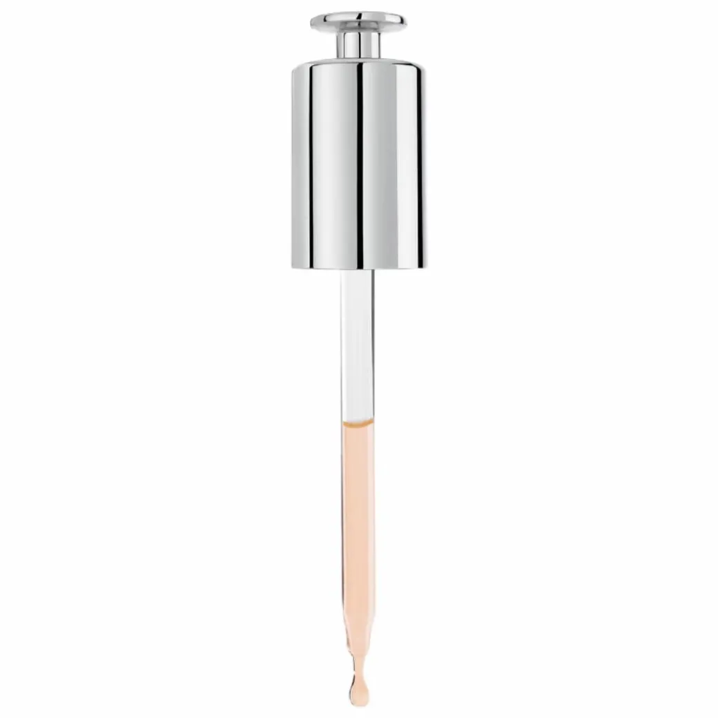 Its formula, recommended by our aesthetic doctors, combines 5 powerful antioxidants [vitamin E + vitamin B3 + ergothioneine + vitamin C + astaxanthin]. A cocktail of 5 preventive anti-ageing active ingredients that improves the quality of the skin: it smooths fine lines, refines skin texture, reduces the appearance of pores and illuminates the complexion. This serum’s protective action is boosted by the combination of ergothioneine from rye, vitamin B3 and vitamin E, well-known for their effectiveness to fight against free radicals, prevent collagen breakdown, absorb blue light and protect the skin from ageing.