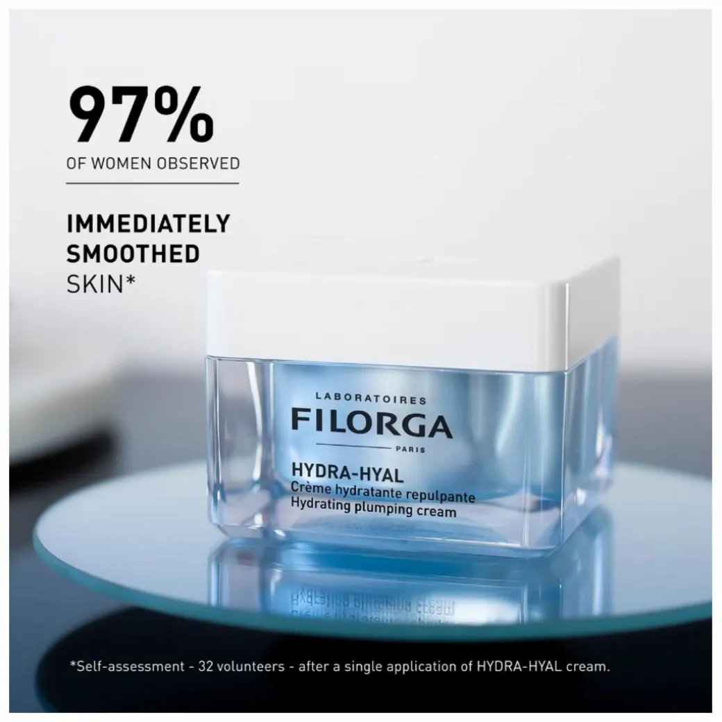 Filorga Hydra-Hyal Hydrating Plumping Cream is a plumping face cream combining the power of 5 hyaluronic acids for hydrated and plumped skin.