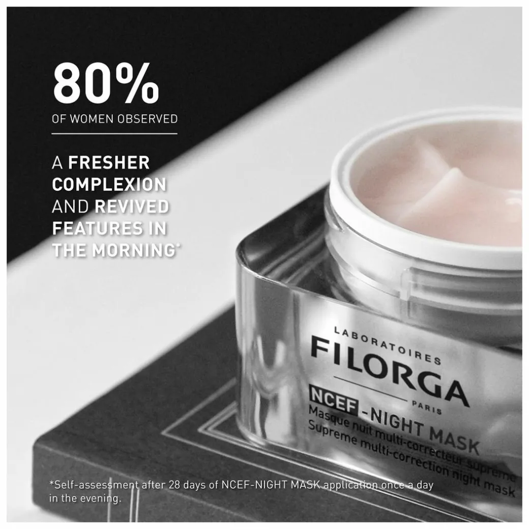 Revive and illuminate tired skin with the Filorga NCEF Supreme Multi-Correction Night Mask, a good night’s sleep in a bottle that targets the signs of ageing.