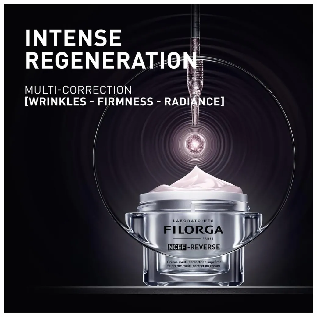 Achieve a renewed and revitalised complexion with the Filorga NCEF Reverse Supreme Multi-Correction Cream, an anti-ageing moisturiser suitable for normal to dry skin that brightens and restores the complexion.