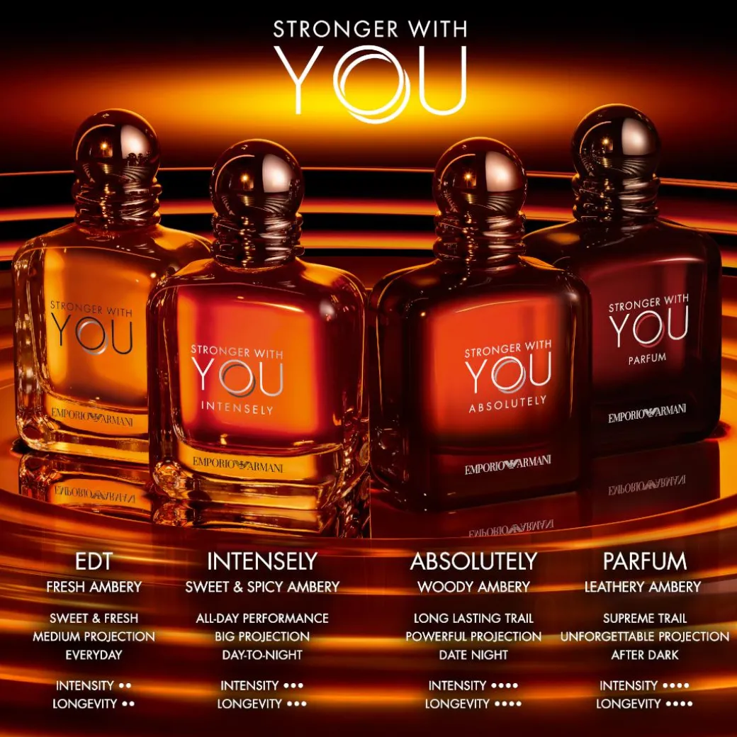 – This smooth scent leaves an unforgettable impression, all captured in the signature Stronger With You bottle.