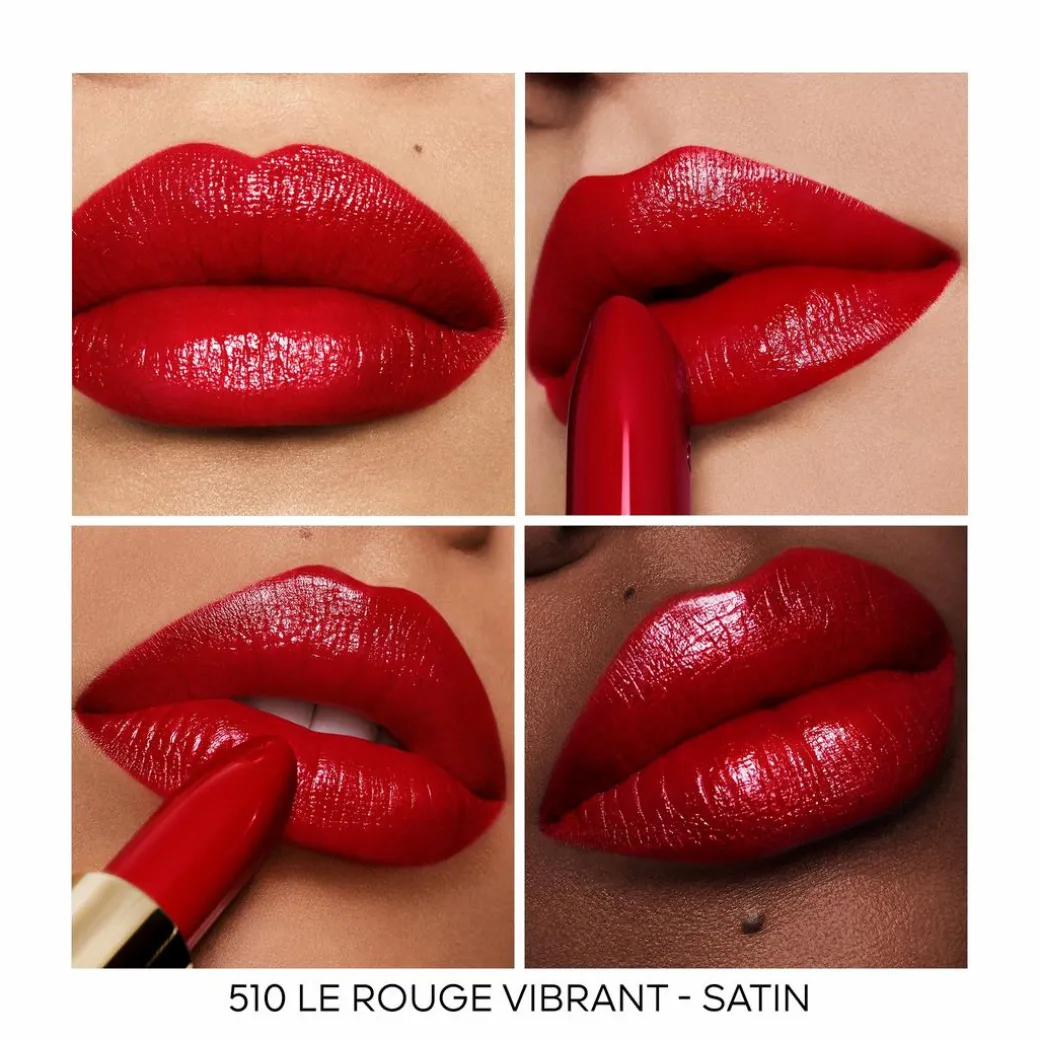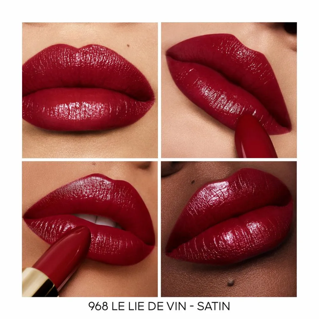 The satin and velvet matte formulas of this new-generation Rouge G boasts an ultra-light enveloping texture for a bare-lips sensation and 16-hour comfort. The satin formula coats lips in a luscious texture, leaving them plumped and perfectly shaped. Its silky finish offers a long-lasting satin sheen. The velvet matte formula smooths and coats lips in unequalled softness for a velvety result, ensuring exemplary hold for 12 hours.