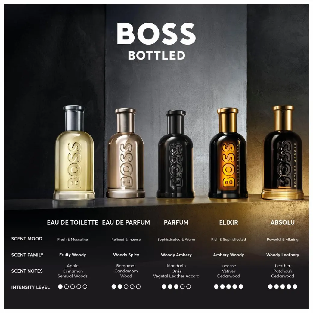 The third opus within a trilogy of intensity from BOSS Bottled, this woody-leathery scent instantly commands the senses. It is a captivating BOSS scent, formulated at the fragrance family’s highest concentration yet, building upon its quintessential woody signature with absolute depth “ the essence of a BOSS.