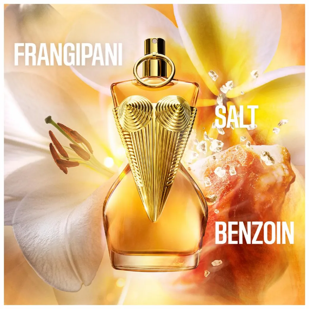 Gaultier Divine Le Parfum Intense is a bold, glamorous, and intensely captivating fragrance. Embrace the vibrant essence of salty, sun-soaked skin, and let the radiant glow of frangipani envelop you. This amber floral scent opens with a burst of freshness, blending seamlessly into the creamy, tropical notes of frangipani and salt. As it settles, the scent deepens into a warm, honeyed caramel base of benzoin and amber, creating a long-lasting and unforgettable trail.