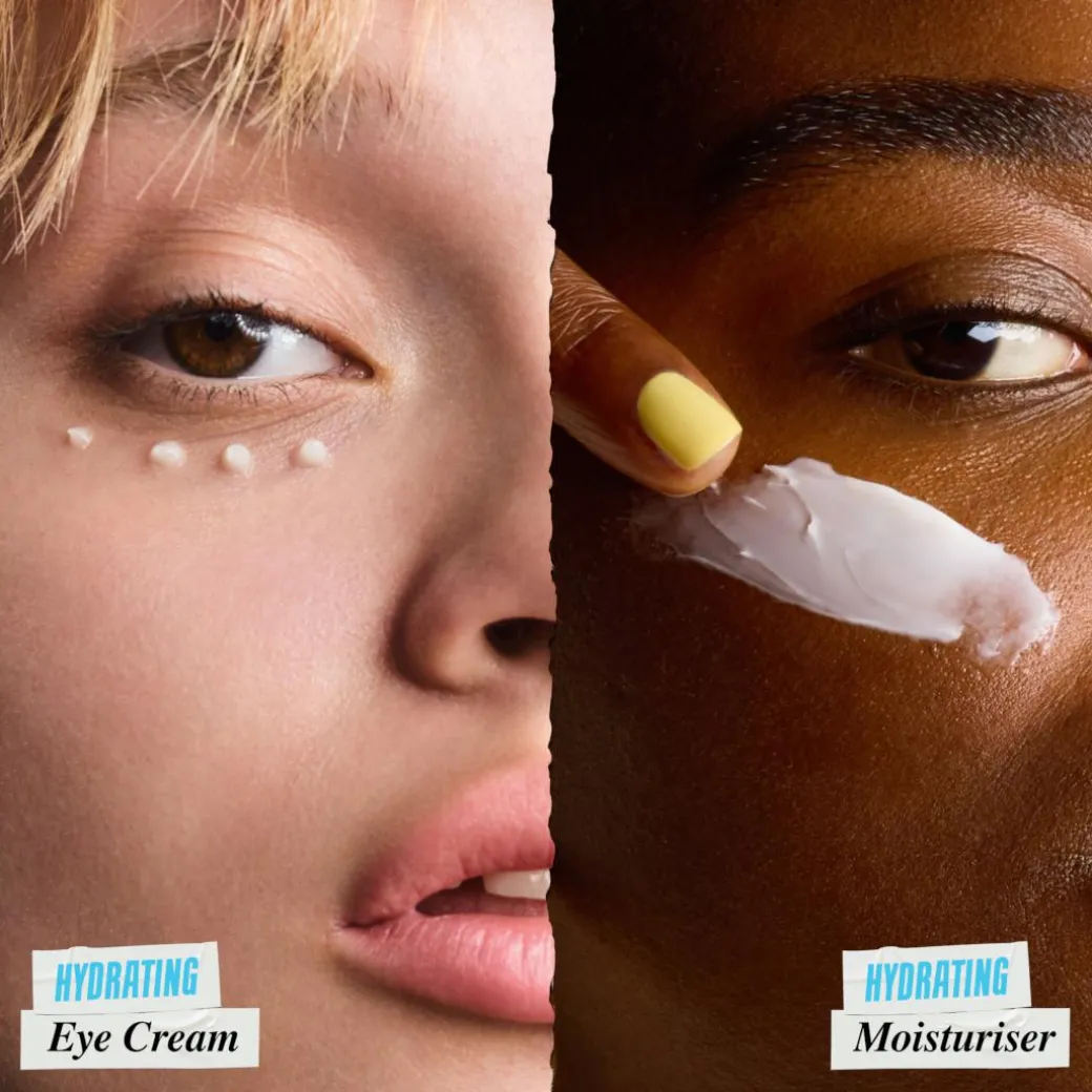 - Gently tap the hydrating eye cream around the delicate eye area and along the orbital bone with your fingertip