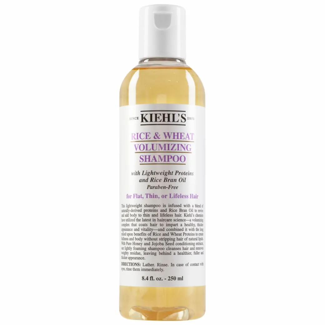 Add volume to flat, lifeless hair with the Kiehl’s Rice & Wheat Volumising Shampoo, a lightweight volumising shampoo with proteins and rice bran oil.