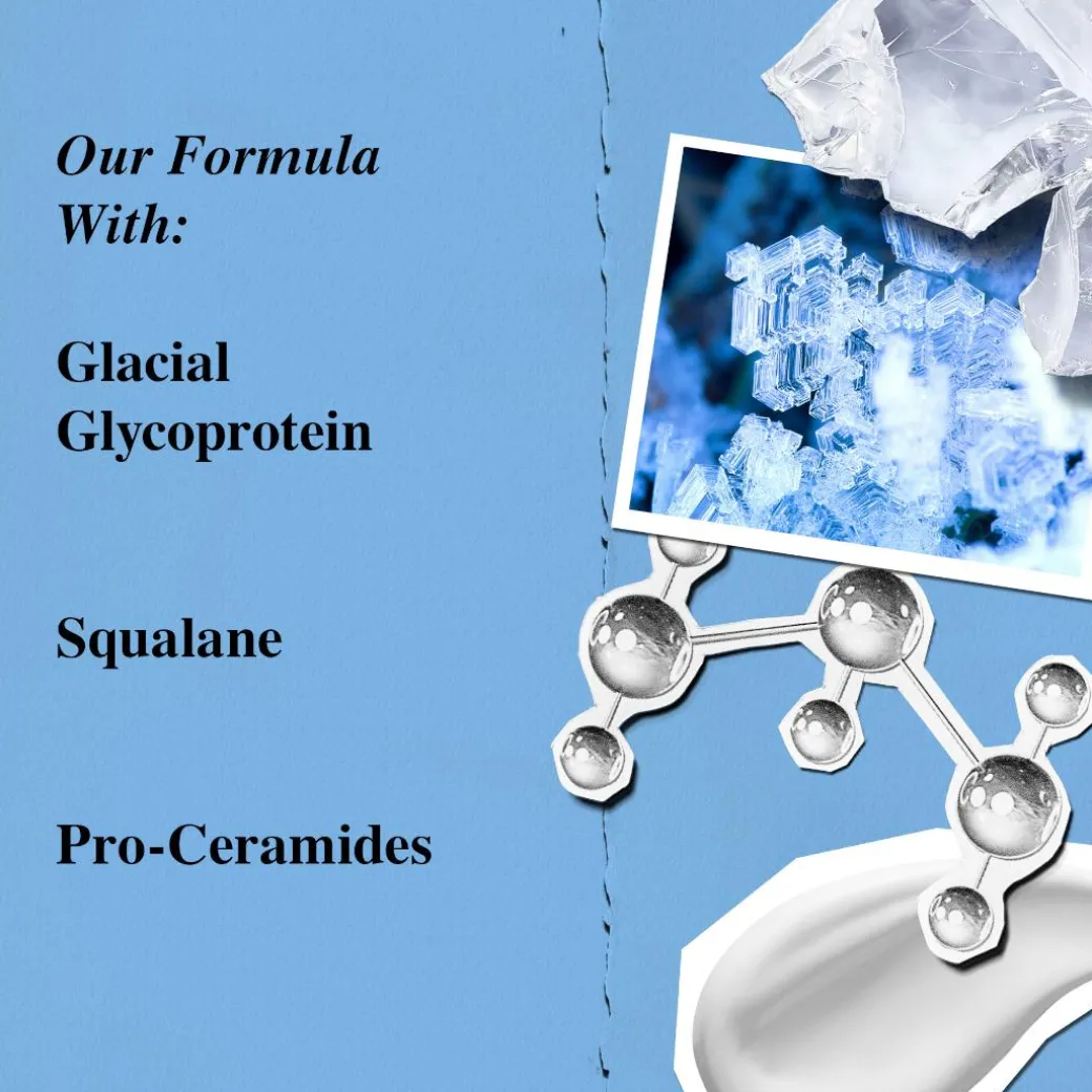 Suitable for sensitive skin, our formula with Glacial Glycoprotein, originally derived from glaciers, and Ectoin, known to thrive in desert climates, leaves skin feeling soft, smooth and protected.