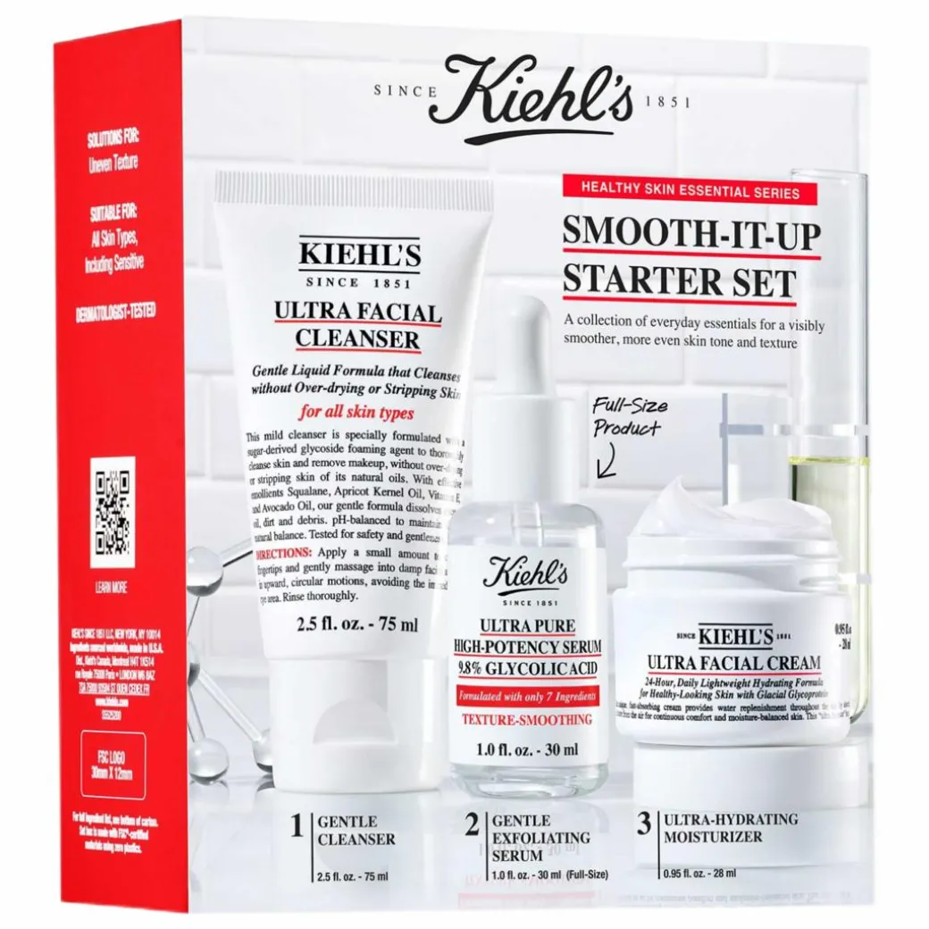 This set of skincare essentials for smooth skin features our gentle facial cleanser, minimally formulated 9.8% Glycolic Acid facial serum, and our hydrating Ultra Facial Cream, which all help visibly reduce pores and create more visibly smooth skin.