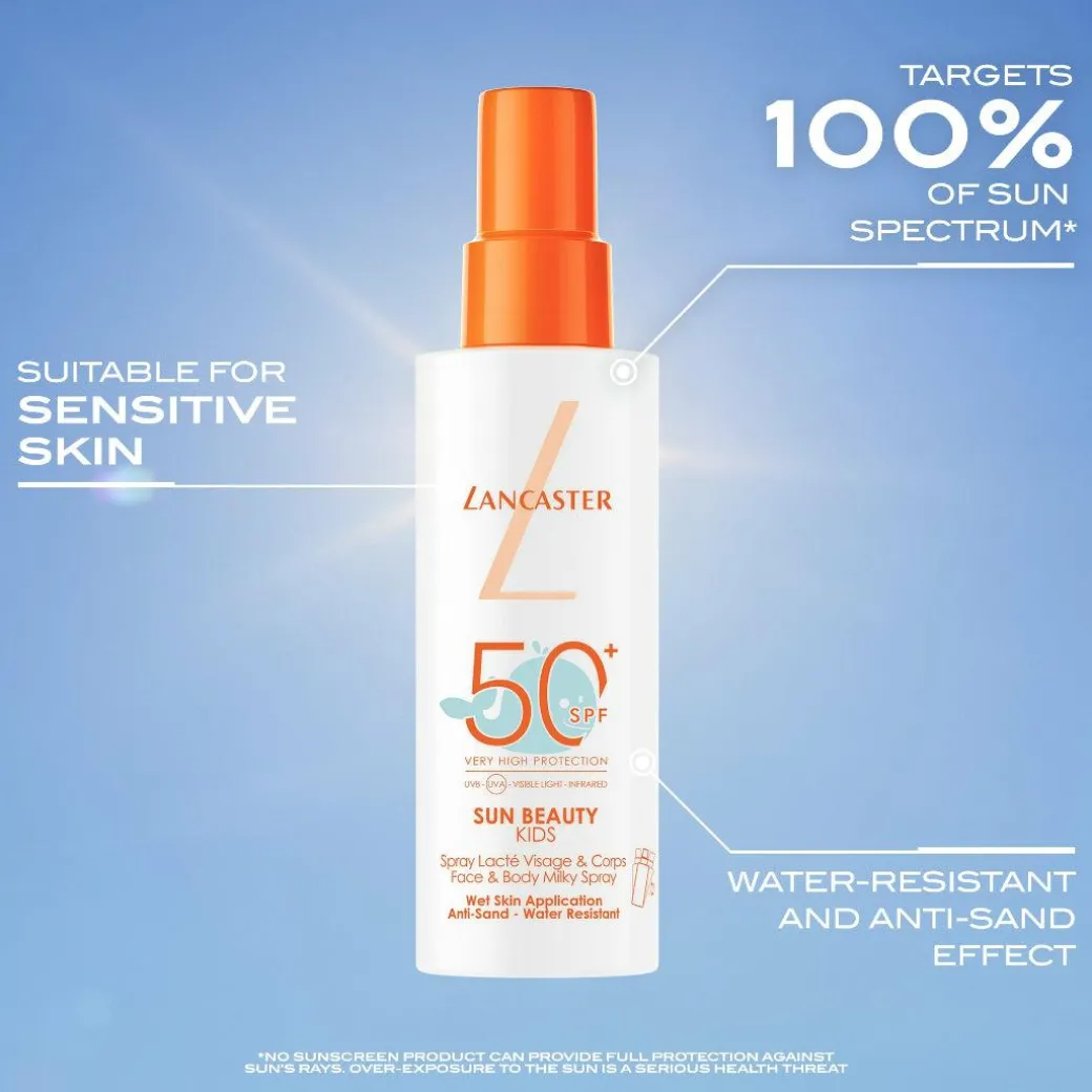 Lancaster’s SPF50+ Milky Spray features Lancaster’s Full Light Technology, which targets 100% of the sun’s spectrum so the skin isn’t just protected against UVB and UVA rays, but also infrared rays and visible light too. It also soothes and preserves sensitive skin against sun-induced damages, all thanks to a natural-origin Sunsicalm Complex.