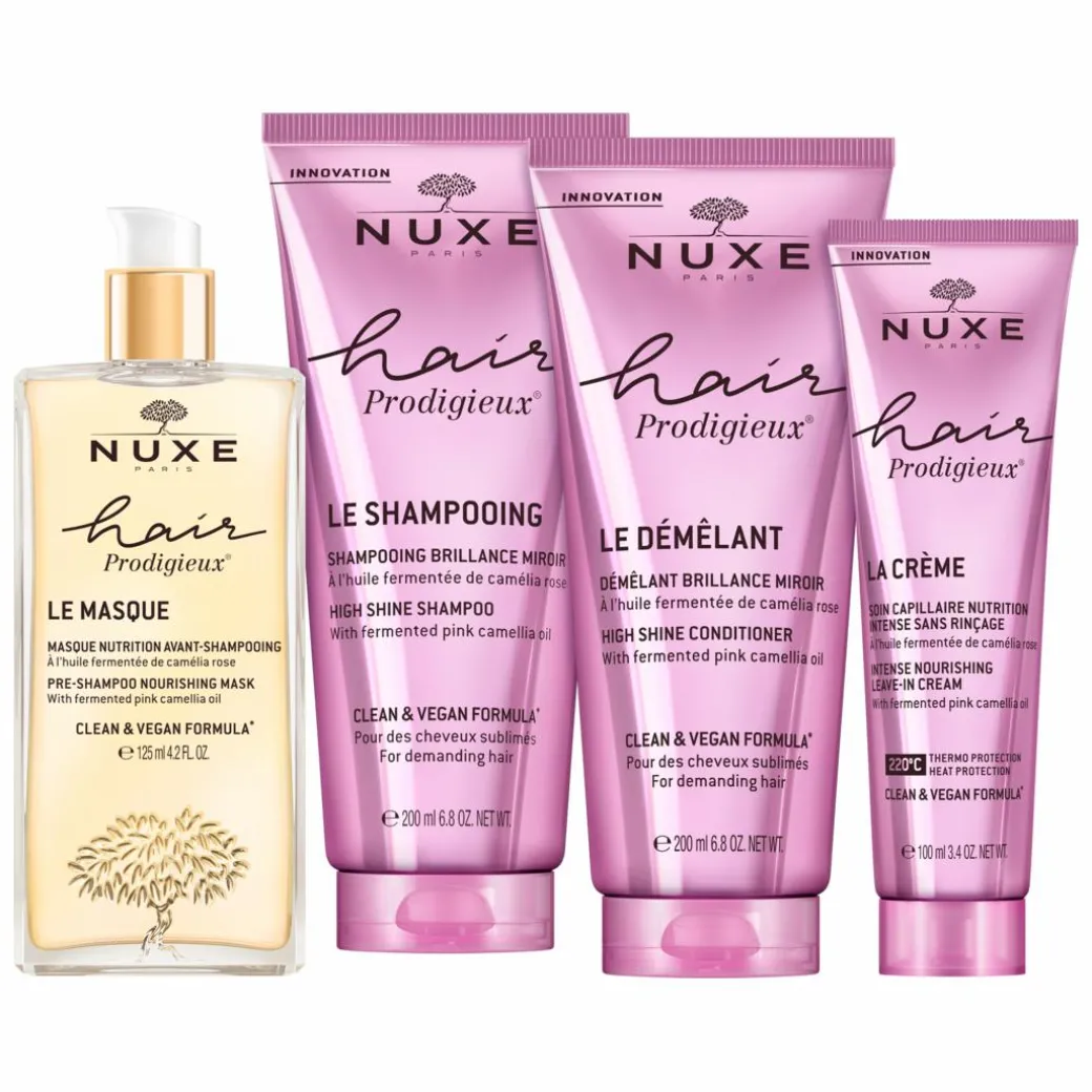 Building on Laboratoire Nuxe’s expertise in botanical oils, the Pre-Shampoo Nourishing Mask is a truly unique care. Formulated without silicone, this mask, with fermented Pink Camellia oil, intensely nourishes and helps repair the hair fiber. This oil treatment with the iconic fragrance of Huile Prodigieuse®, envelops the hair for a truly sensorial ritual. The hair is shiny with an addictive silky feel.