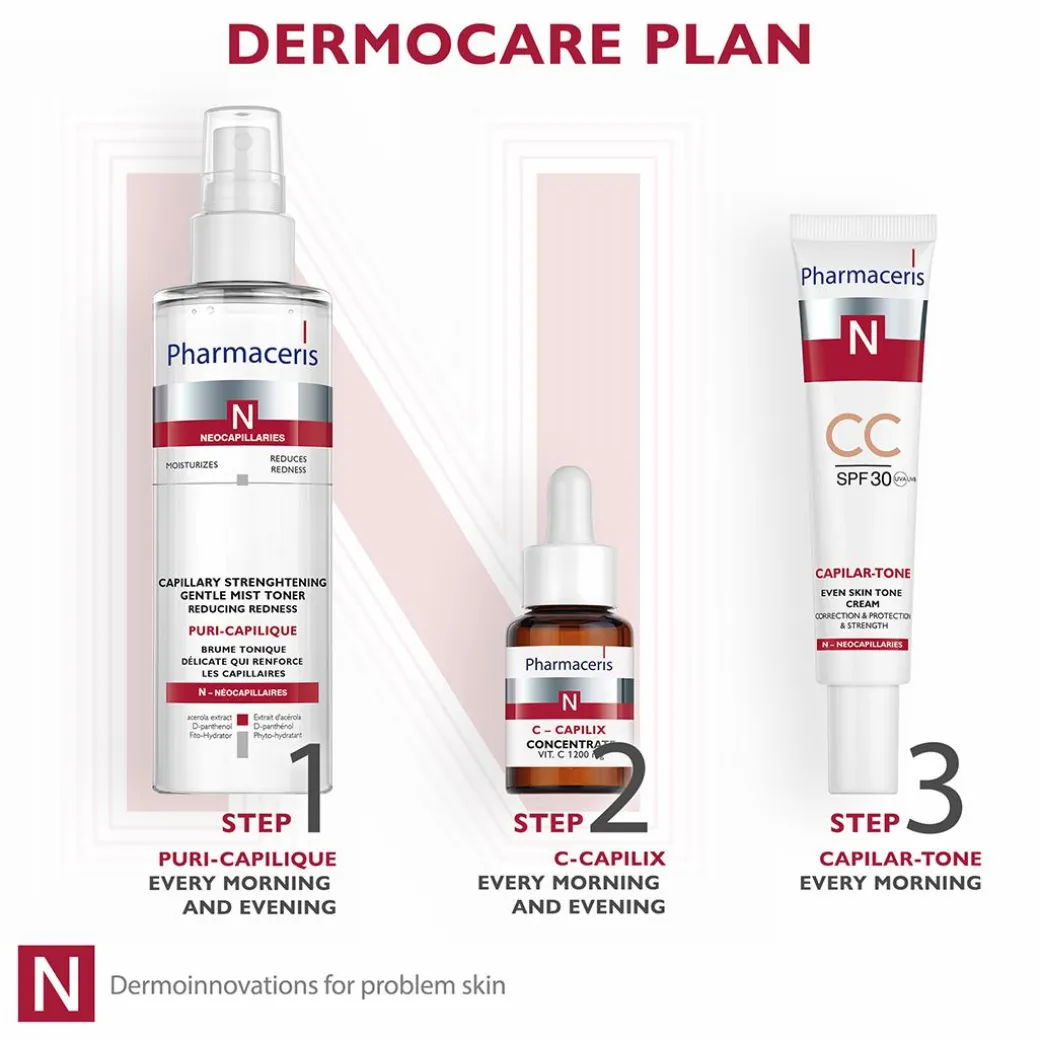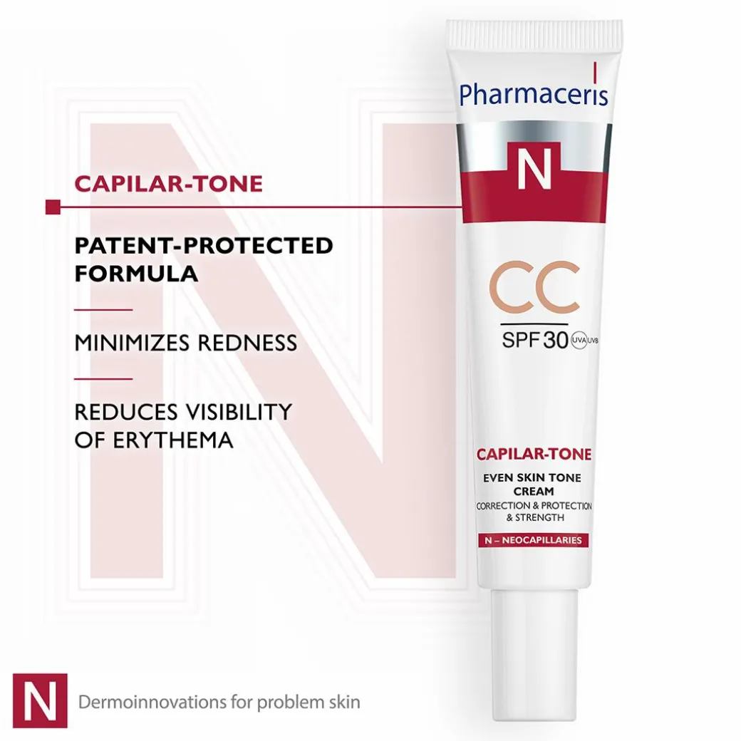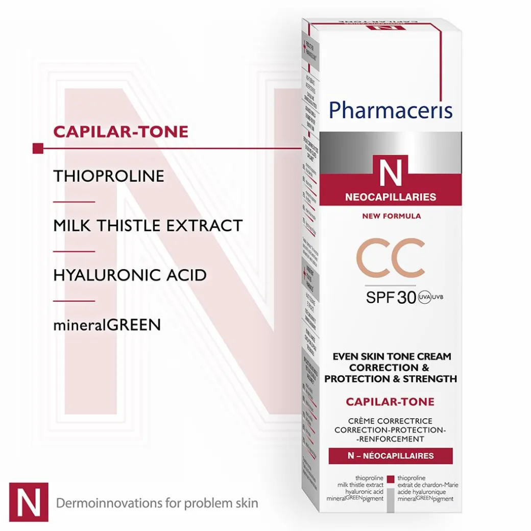 Although redness-prone skin is common and nothing to be ashamed of, it can sometimes impact your self-confidence. If this is the case, it’s always a good idea to target redness or dilated capillaries in your skincare routine; the N range by Phamraceris is a great place to start if you’re looking for suggestions. However, sometimes you want a solution that shows instant results, which is where the Pharmaceris N Evens Skin Tone CC Cream with added SPF defence comes into play. Powered by the tone-evening abilities of green mineral pigment, the cream adapts to your natural skin to deliver perfected, uniform and calm-looking coverage without creating a mask-like effect – and of course, it still benefits your skin through its soothing formula.