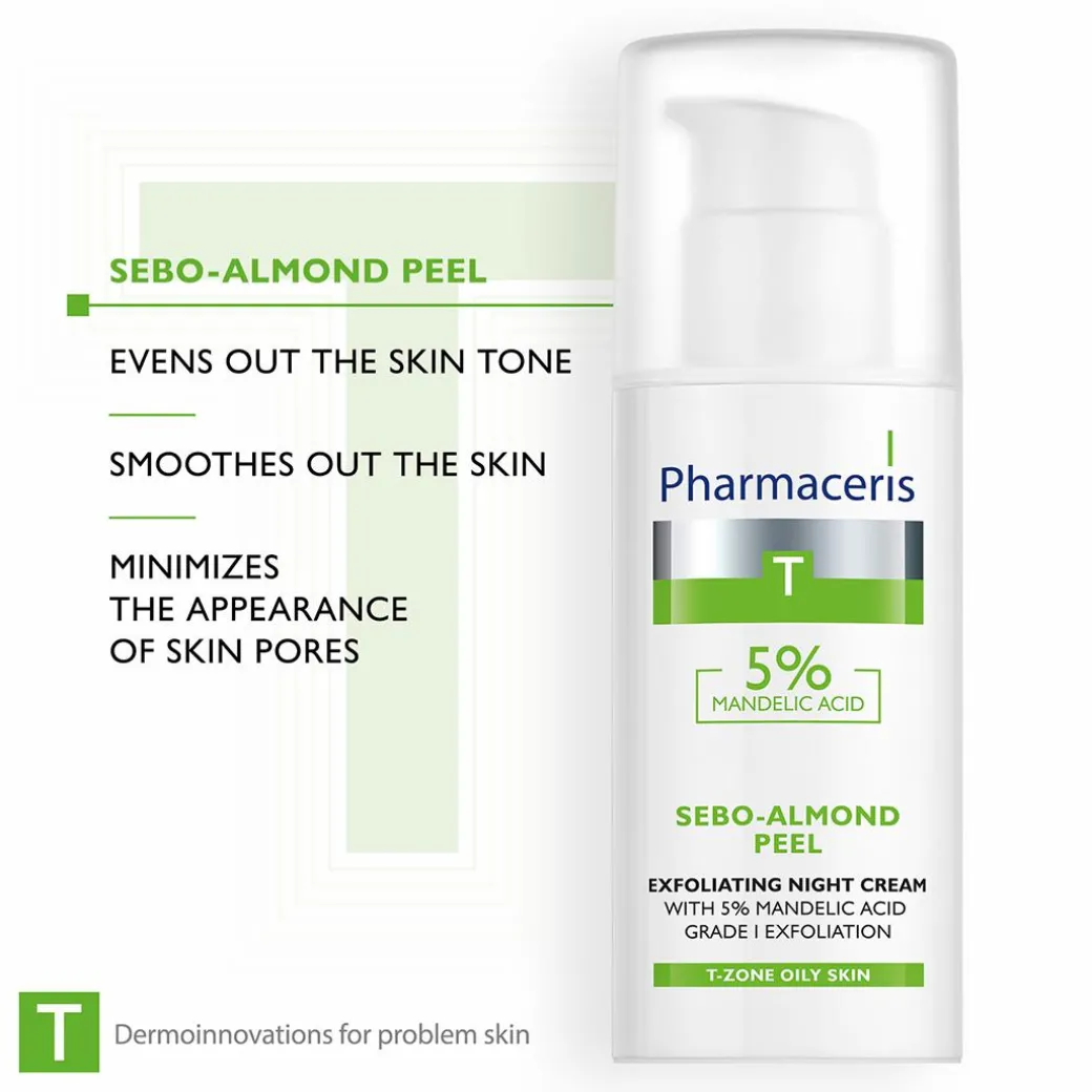 Designed to offer anti-acne properties and regulate sebum secretion, the Pharmaceris T Sebo-Almond Peel Night Cream works to eliminate existing acne lesions and reduce the formation of new imperfections.