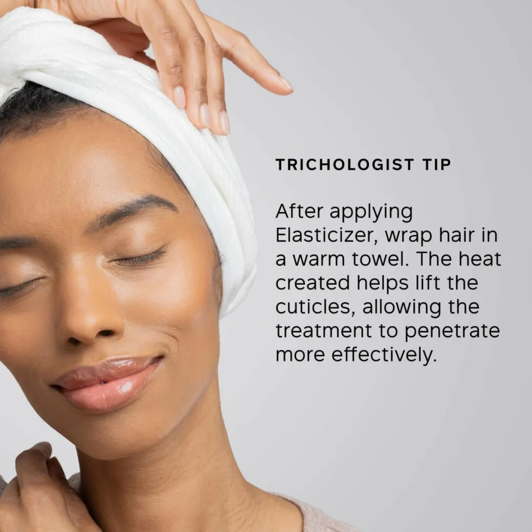 Apply a generous amount to coarse, wavy, curly, and frizzy hair. If you notice the formula sinking in and disappearing, apply more until your hair feels slippery. The drier your hair is, the more Elasticizer Extreme it’ll need.