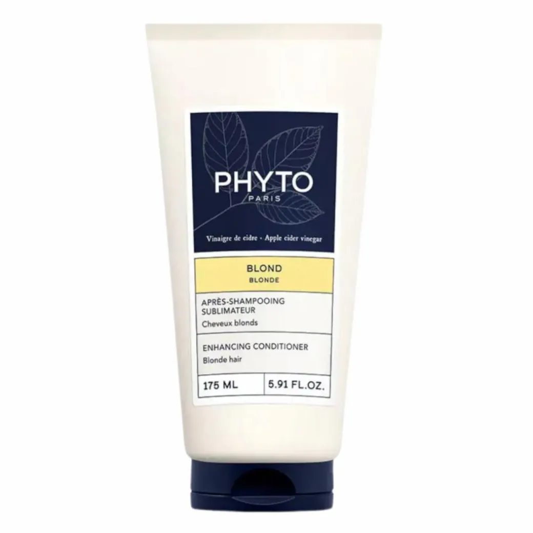 Phyto Blonde Enhancing Conditioner detangles easily, nourishes and enhances the shine of blonde hair for the whole family* from the very first use. The hair is softer and shinier. At the heart of the formula, apple cider vinegar smoothes the scales of the fibre to reveal a radiant blond and safflower extract protects the fibre from external damage. Thanks to an extraction of white mallow, the hair is twice as shiny.