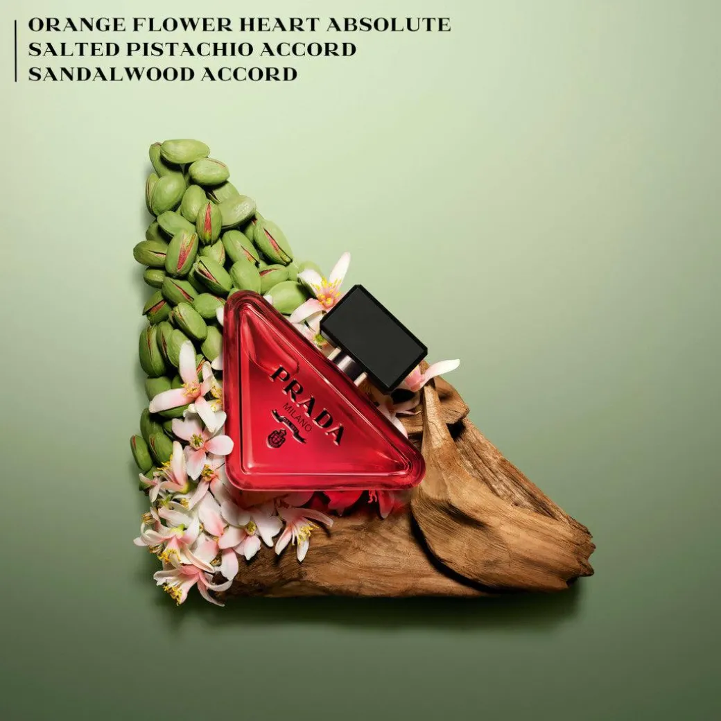 Paradoxe Radical Essence, the new feminine fragrance by Prada. This new signature rethinks gourmand scents with the most addictive Paradoxe: a concentration of unexpected gourmand notes in a sophisticated Parfum.