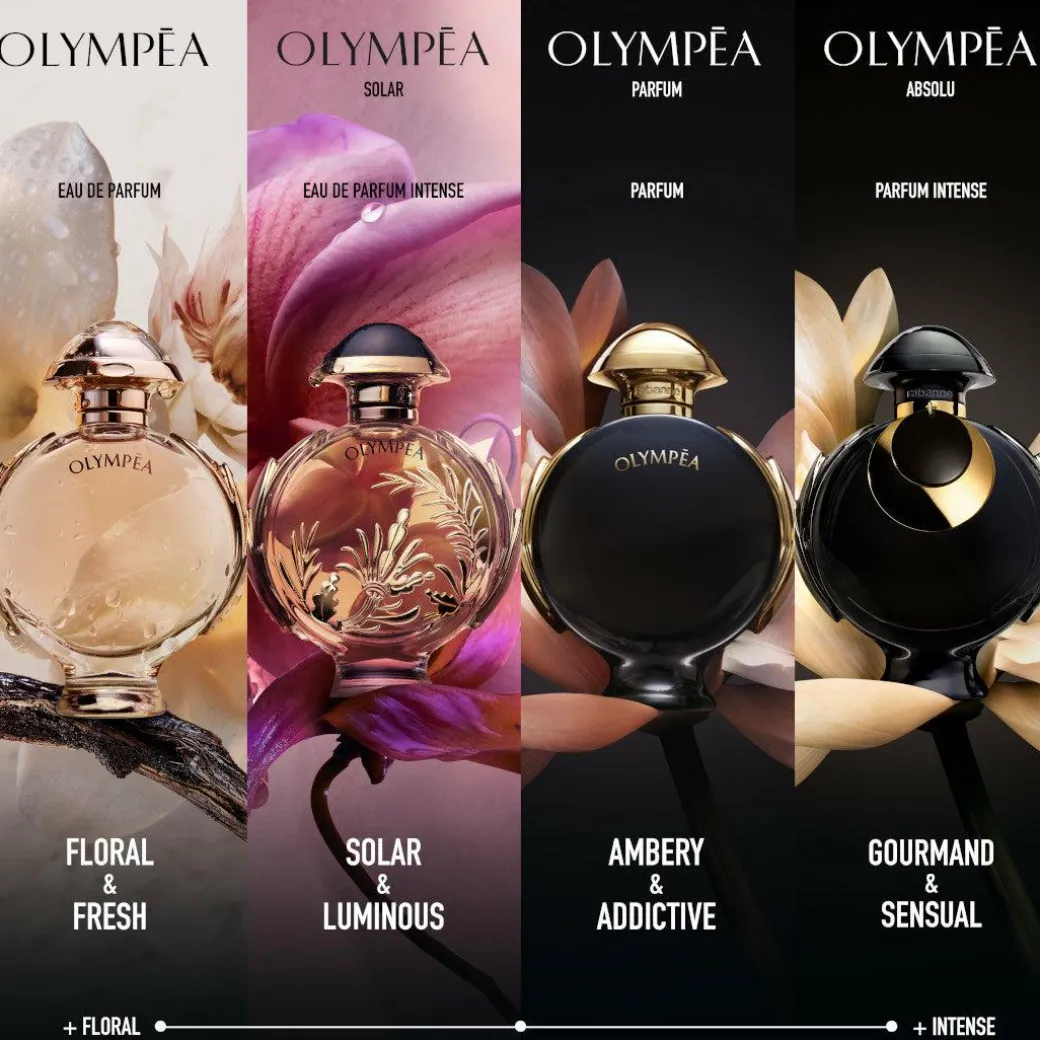 Night falls on a volcanic beach; she’s the glow that eclipses the darkness as her most mysterious side shines bright. Olympea Absolu is a floral, gourmand, fruity accord of exceptional intensity that ignites the light of the goddess through a sensual blend of luminous apricot, jasmine absolute and addictive vanilla.