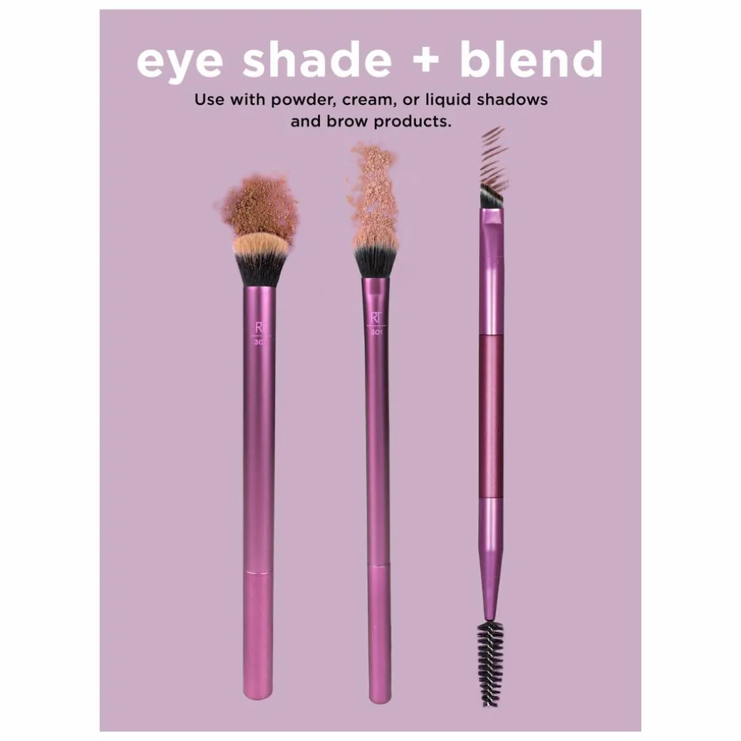 Create eyeshadow looks like a pro with the Real Techniques Eye Shade and Blend Brushes, a pack of eyeshadow brushes for easy application with a bonus dual-ended brow brush.