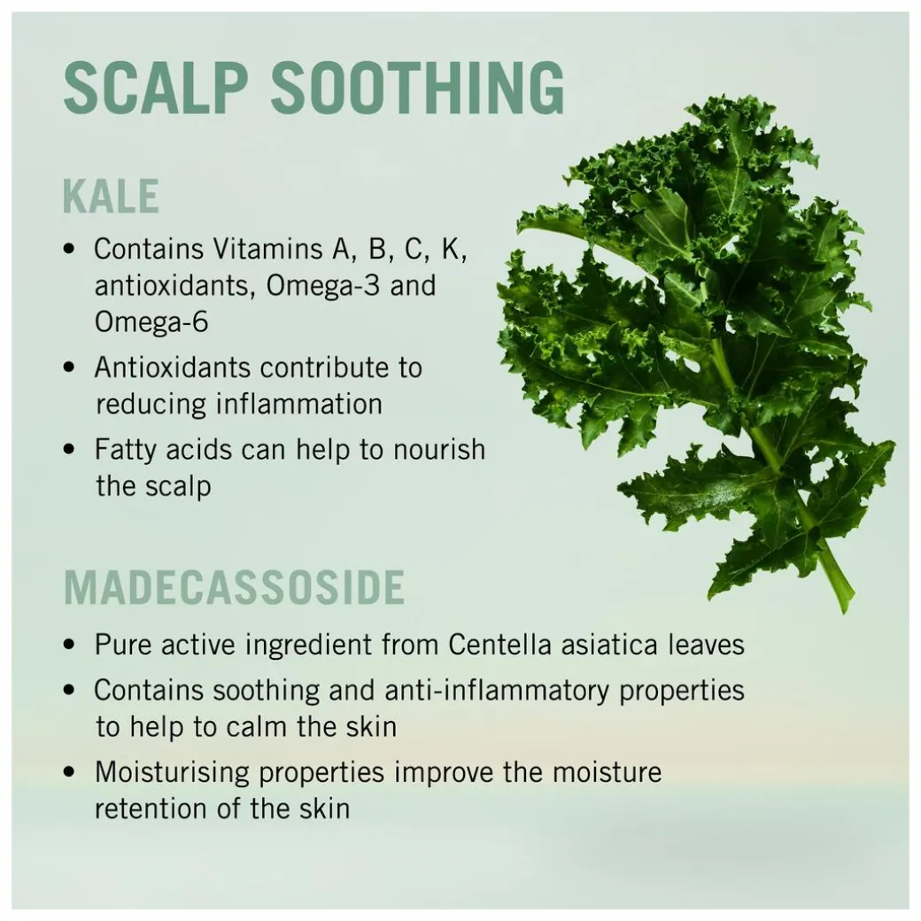 The Schwarzkopf Scalp Soothing Shampoo immediately calms dry and sensitive scalps prone to irritation. The gentle shampoo will relieve and rebalance, leaving the scalp feeling comfortable and will improve the future condition of hair. The dermatologically tested formula contains a superfood complex enriched with kale and madecassoside, ingredients known for their anti-inflammatory and nourishing properties. Added AHAs exfoliate the scalp, removing dirt, pollutants and dead skin cells to improve the skin’s moisture levels and improve scalp health.