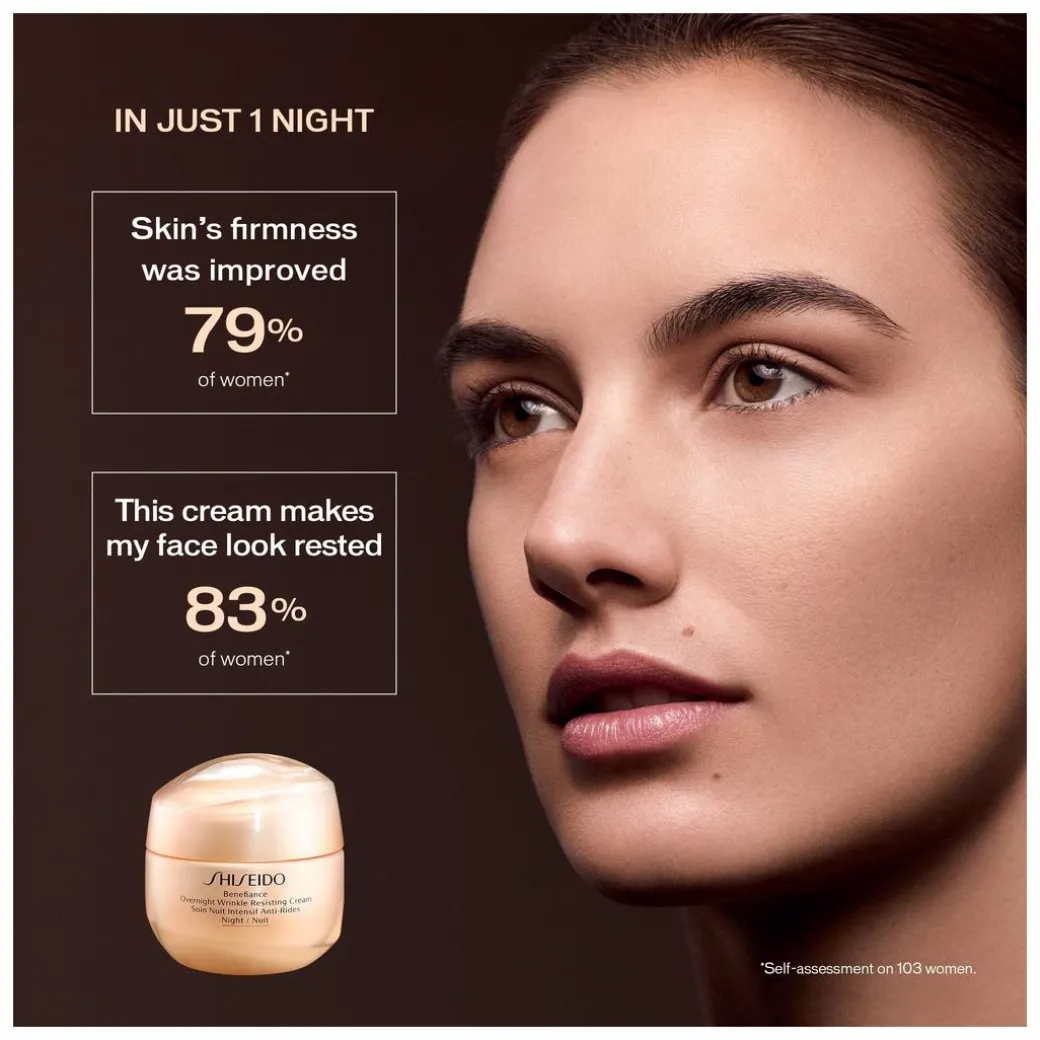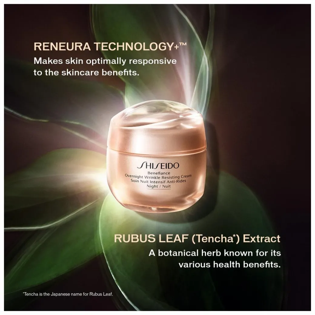 Wake up to youthful skin with the Shiseido Benefiance Overnight Wrinkle Resisting Cream, a night-time moisturiser for all skin types that encourages a firm, smooth and well-rested look from the first use.