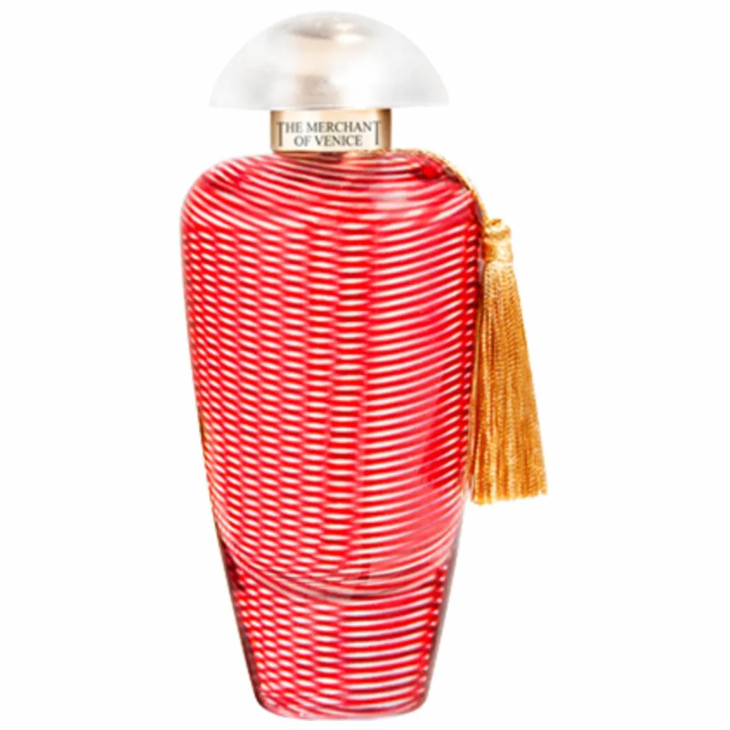The fragrance Byzantium Saffron expresses its strength through a vibrant red flacon. The dazzling design gives the strong impression of the precious Saffron contained in the fragrance. It is decorated with a golden tassel and a white, semi-transparent cap through which we can view the wind rose.