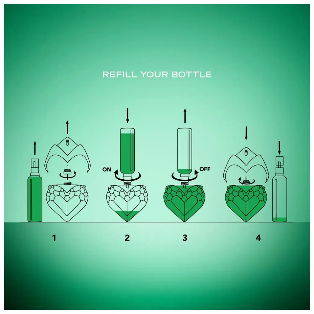 Keep your original Mugler Aura heart-shaped bottle topped up by removing the lid and decanting the refill into it using the included funnel to avoid any spillage.