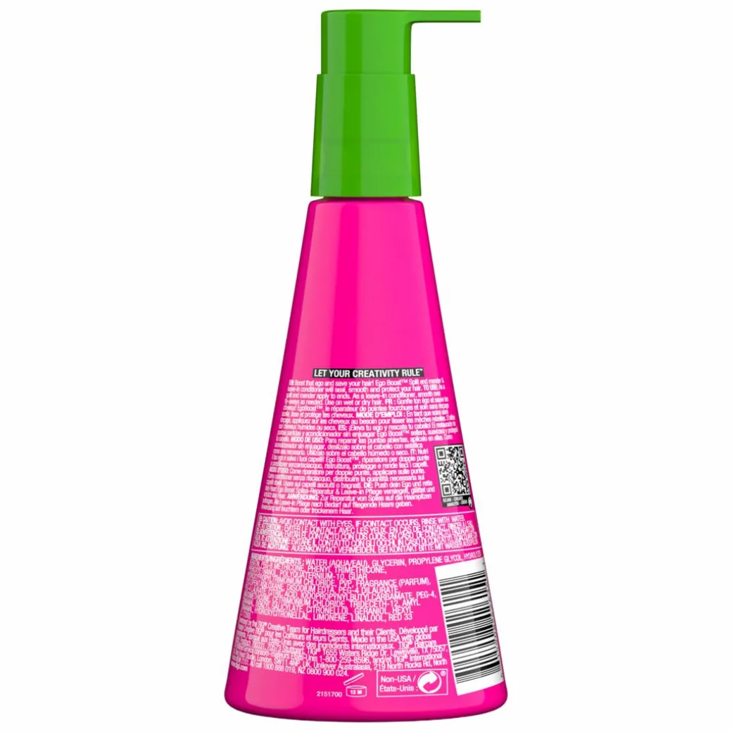 Rescue damaged hair with TIGI Bed Head Ego Boost, a leave-in conditioner that mends split ends.A powerful smoothing formulation, not only designed with, but used by salon professionals. Delivering salon results and salon experience at home.
