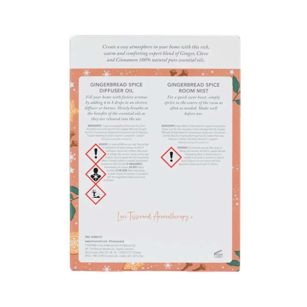 Gingerbread Spice Body and Room Mist Ingredients: Aqua (Water), Polysorbate 20, Eugenia Caryophyllus (Clove) Leaf Oil, Citrus Aurantium Dulcis (Orange) Peel Oil, Zingiber Officinale (Ginger) Root Oil, Cinnamomum Zeylanicum (Cinnamon) Leaf Oil, Myristica Fragrans (Nutmeg) Fruit Oil, Sodium Benzoate, Potassium Sorbate, Citric Acid, Limonene*, Linalool*, Eugenol*.*Naturally Occurring Within Essential Oils.Gingerbread Spice Diffuser Oil Ingredients: Eugenia Caryophyllus (Clove) Leaf Oil, Citrus Aurantium Dulcis (Orange) Peel Oil, Zingiber Officinale (Ginger) Root Oil, Cinnamomum Zeylanicum (Cinnamon) Leaf Oil, Myristica Fragrans (Nutmeg) Fruit Oil, Eugenol*, Limonene*, Linalool*.*Naturally occurring within essential oils.