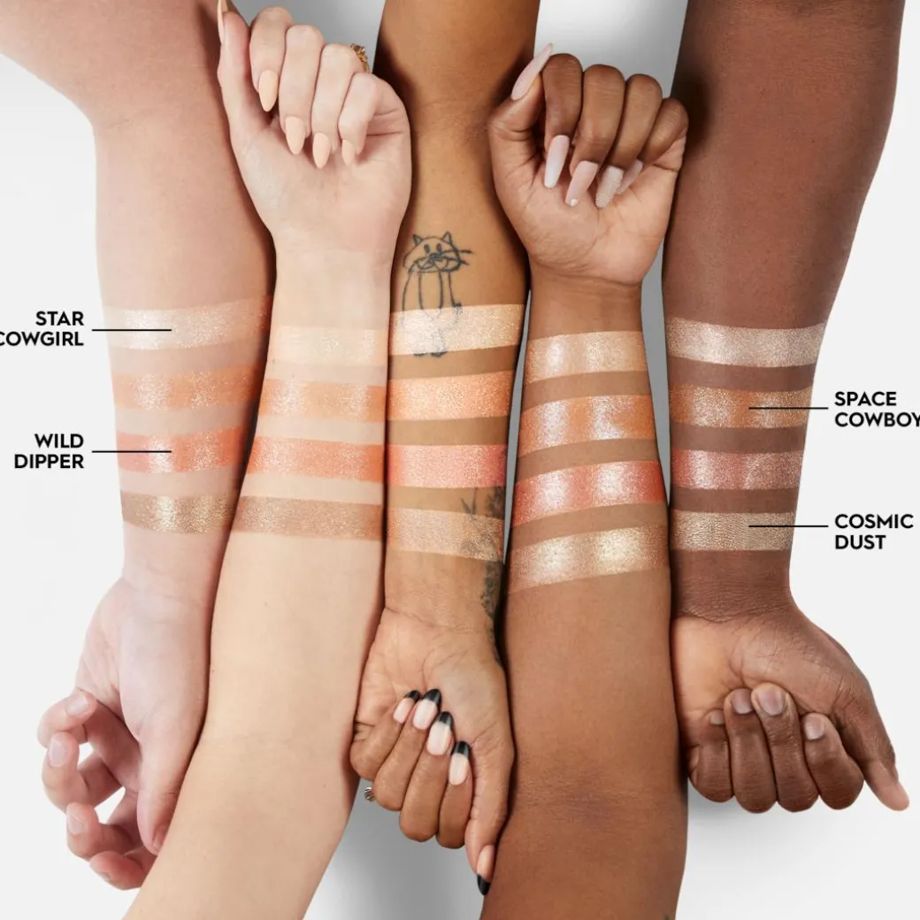 Moondust Space Rider Eyeshadow Palette features four intense, high pigment shimmers. Inspired by our original Space Cowboy shade, our iconic Moondust formula doesn’t compromise on vibrancy. Shine bright with our metallic hues and reflective glitter, adding dazzling definition to your eye makeup look.