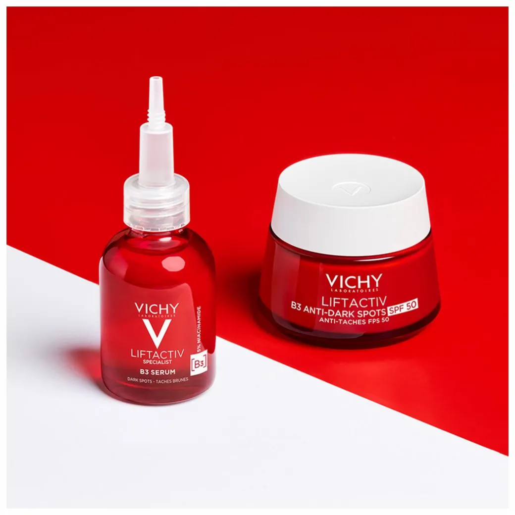 Liftactiv Niacinamide B3 Anti-Dark Spots and Pigmentation Cream SPF50 helps to correct and reduce pigmentation and appearance of wrinkles. Formulated with multipurpose hero dermatological active Niacinamide (Vitamin B3) and skin-surfacing peeling active LHA.