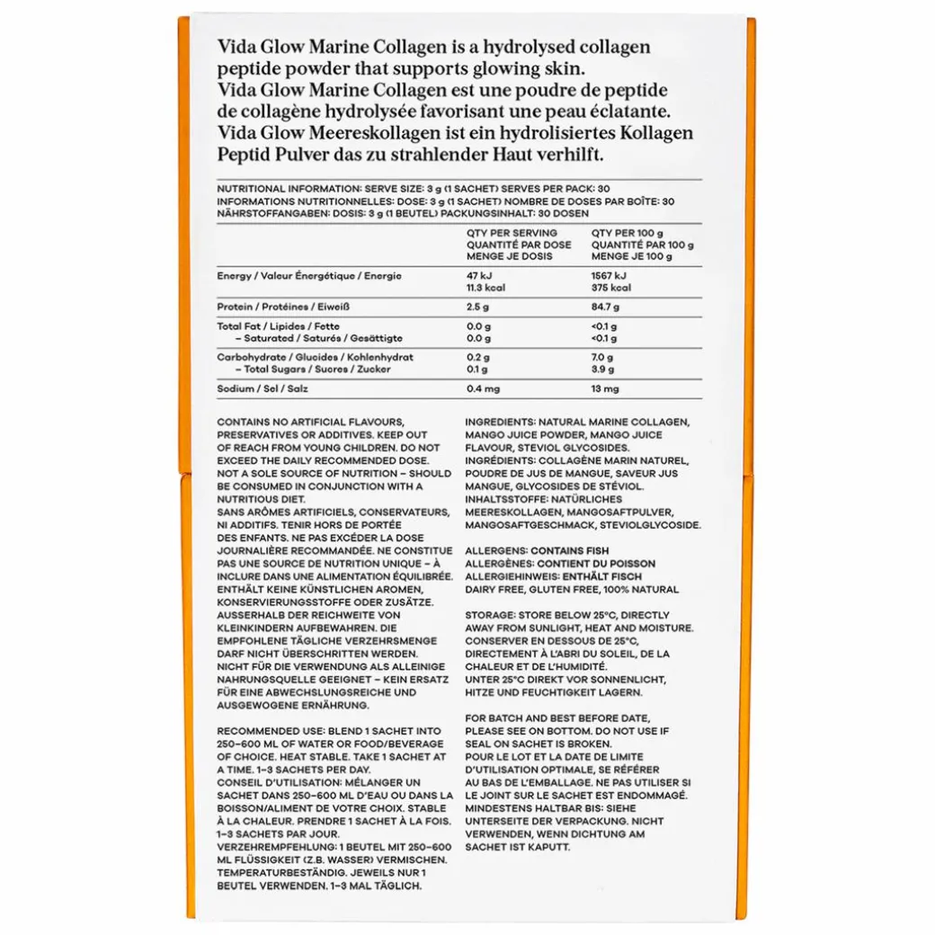 Natural Marine Collagen, Mango Juice Powder, Mango Flavour, Steviol Glycosides.