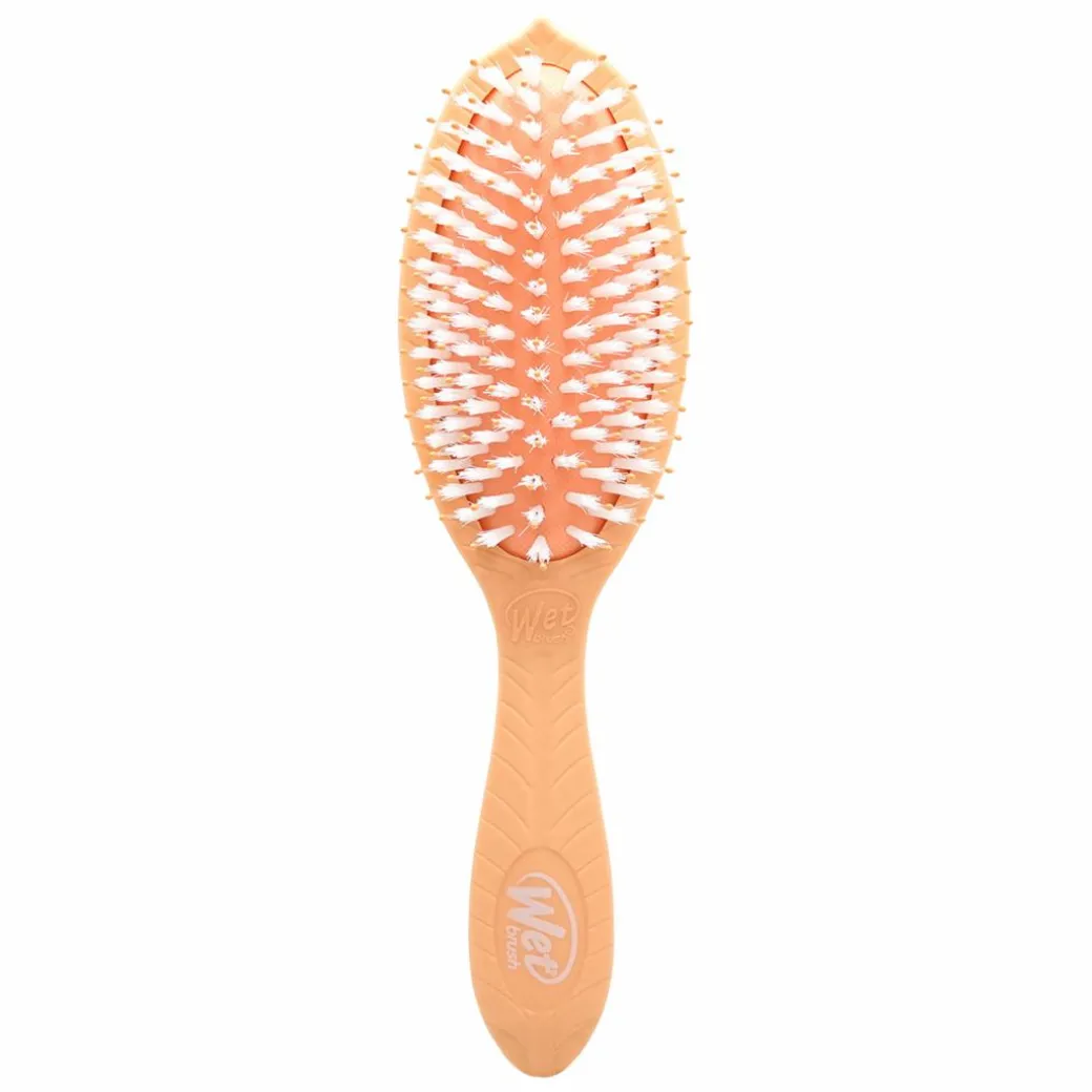 Perfect for those experiencing fall out, breakage or split ends during brushing, the Wet Brush Go Green Brush in Peach gently glides throughout your hair to reduce frizz by distributing natural oils for a shiny and smooth finish.